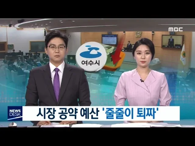 1. 민선 7기 여수시 주요 공약사업 예산들이 의회에서 줄줄이 퇴짜를 맞았습니다. 충분한 준비 없이 예산부터 요구한 것이 예산 배정에 걸림돌이 됐습니다. //////////////////////////////////////////// 2.도심 주택가 공원에서 독특한 장터를 열어 청년 창업가로 관심을 끄는 젊은이들이 있습니다. 소비자들의 구매 욕구...