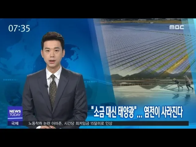 풍부한 일조량에 땅값도 저렴한 염전이거대한 태양광 발전 사업 부지가 되고 있습니다. 염전은 전통 어업의 가치를 지켜야 하는 공간으로 인정받았지만, 천일염 산업 자체가 흔들리는 틈으로 신재생 에너지 산업이 밀려들고 있습니다. 양현승 기자가 취재했습니다. ◀END▶ ◀VCR▶ 전남의 한 바닷...