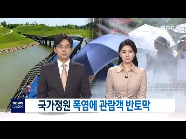1.연일 기록적인 폭염이 계속되면서 지역의 주요 관광지도 비상입니다. 순천만 국가정원에는 관람객이 절반 정도 줄어 관람객 유치 전략에 차질이 빚어지고 있습니다. ////////////////////////////////////////// 2. 여름 휴가가 절정을 이루면서 계곡을 찾는 피서객이 늘고 있습니다. 올해는 피서객들이 강렬한 햇빛이 내...