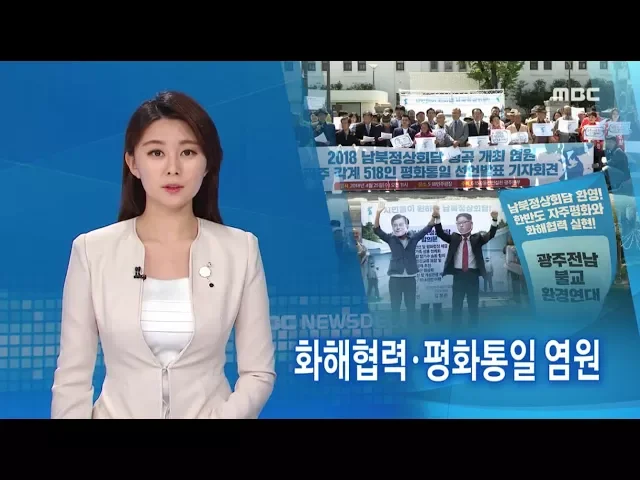 (앵커)남북정상회담 개최를 앞두고남북 화해와 평화통일을 염원하는 목소리가 커지고 있습니다.오월 정신을 평화통일로 승화시키기 위한 행사를광주에서 열자는 분위기도 고조되고있습니다.이계상 기자..(기자)남과 북의 정상이 정상회담 합의문에 서명을 하는 퍼포먼스가 펼쳐집니다.이 합의문에는남북미중 4개국의 종전선...