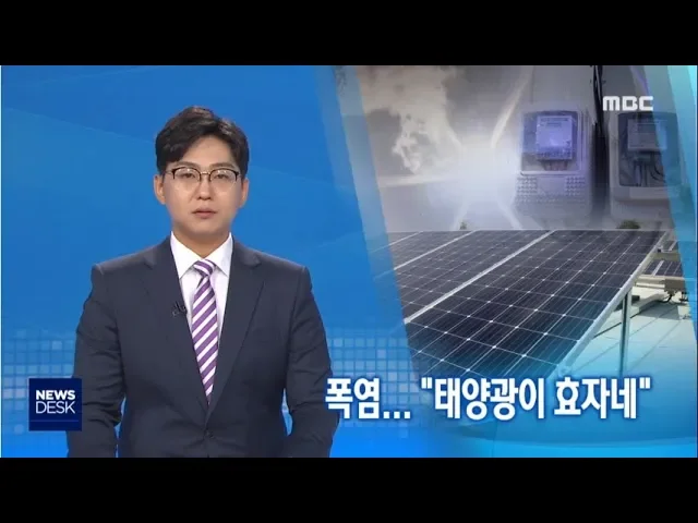 연일 계속되는 폭염으로전기 사용량이 크게 증가하면서집집마다 전기요금 폭탄을 걱정하고 있습니다.하지만주택용 태양광 발전 설비를 갖춘 가정에서는전기요금 걱정없이올 여름 폭염을 이겨낼 수 있게 됐습니다.이계상 기자..(기자)이글거리는 태양 아래서태양광 발전 설비가 가동되고 있습니다.1년전에 5Kw급인 이 설비를...