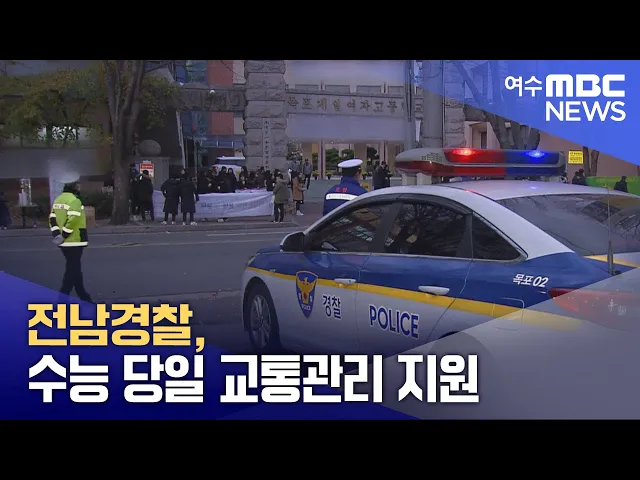 전남경찰청이 내일13) 치러지는 대학수학능력시험의 원활한 진행을 위해 교통 관리 대책을 마련했습니다.경찰은 수능 당일 인력 353명과 순찰차 87대, 오토바이 8대를 투입해 시험장 주변 불법 주정차 단속 등 교통관리 업무를 지원할 예정입니다.또, 시험장 착오나 사고 등으로 입실이 지연될 우려가 있는 수험생이 도움을...