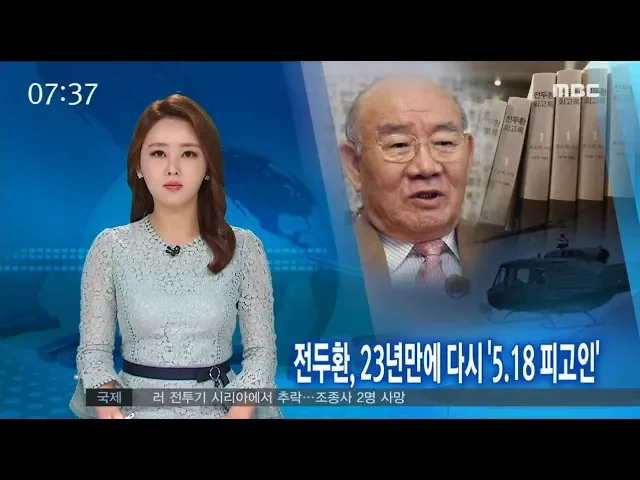 ◀ANC▶전두환 씨가 5.18과 관련해 23년만에 다시 피고인 신분으로재판을 받게 됐습니다.회고록을 통해5.18 당시 헬기사격 증언자를 원색적으로 비난했던 전씨가명예훼손 혐의로 불구속 기소된 겁니다. 김인정 기자입니다. ◀VCR▶1988년 국회에서 열린 5.18 민주화운동 광주특위 청문회에 출석한 ...