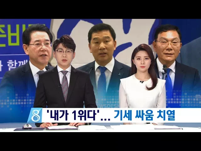 ◀ANC▶ 민주당 전남지사 경선에 뛰어든 3명의 예비후보들이 선거인단 투표를 앞두고 막판 기세싸움이 치열합니다. 서로가 1위라고 홍보하면서,공개지지 선언을 통한 세과시도 하고 있습니다. 박영훈 기자입니다. ◀END▶ 민주당 전남지사 예비 후보 3명이 보내온 휴대전화 문자 선거정보입니다.C/G]민주당의 ...