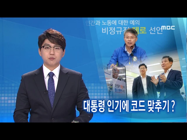 (앵커)문재인 대통령의 높은 지지율 때문에지방선거 입지자들 사이에서는이른바 '문재인 마케팅'이 -시작되는 분위기입니다반면, 국민의당 입지자들은 속만 태우고 있습니다. 윤근수 기자(기자)광주시장 선거 출마 의사를 밝힌 민형배 광산구청장이기자회견을 자청해 비정규직 제로화를 선언했습니다.광산구에는 공공부문 ...
