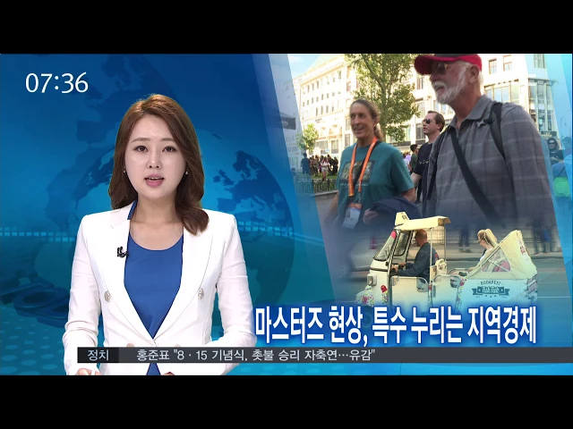 (앵커)세계 수영동호인들의 축제인 마스터즈대회, 국가대표선수들 경기인 선수권대회과 비교해 지역경제에 미치는 영향이 적지 않습니다.참가선수들이 단지 성적만을 보고 오는 게 아니기 때문이라는데요. 헝가리 현지에서 김철원 기자입니다.(기자)수영 마스터즈대회 씽크로나이즈드 경기에서 은메달을 딴 이 여성은 경기...