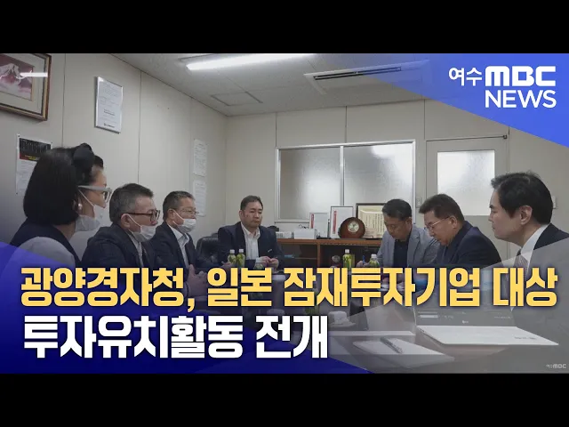 광양경자청이 일본 잠재투자기업들을 대상으로적극적인 투자유치 활동을 벌이고 있습니다.광양만권경제자유구역청은 지난 22일 일본 나고야에서 자동차 산업 분야 각종 정밀공구, 특수기계 부품 제조 기업인 수기에 세이키를 방문해 광양만권의 투자 환경과 제조 여건을 소개하고 향후 투자 가능성에 대해 논의했다고 밝혔...