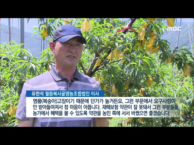 ◀ANC▶지난 5월 내린 우박으로 때아닌 날벼락을 맞은 지역 농가들이 대책마련을 촉구하고 나섰습니다.하지만 농가들의 요구를 전부 수용하기에는 지자체도 난감하다는 입장입니다.김종수 기자가 취재했습니다. ◀VCR▶나무마다 온전한 복숭아를 찾기 힘듭니다.패이고 부서진 복숭아를 볼 때마다 지...
