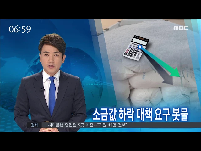 ◀ANC▶천일염 가격 하락세가 끝도 없이 이어지면서, 천일염 생산자들이 한계상황에 내몰리고 있습니다.생산량은 늘어난 반면 저염식 문화로 소비량은 줄고 있는데 뾰족한 대책이 없습니다.양현승 기자가 취재했습니다. ◀END▶ ◀VCR▶현재 천일염 가격은 20킬로그램에 2천4백원 수준입...