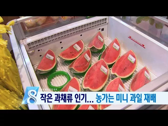 ◀ANC▶핵가족시대가 보편화되고1인 가구가 늘면서 식생활도 크게 변하고 있습니다.크지 않은 과채류가 인기를 끄는가 하면품종 개량을 통한미니 과일도 잇따라 출하되고 있습니다.김종태 기자가 취재했습니다. ◀END▶여름 제철을 맞아대형 마트 과일 매장에 들어선 수박기존 수박을 2분의 1이나4...