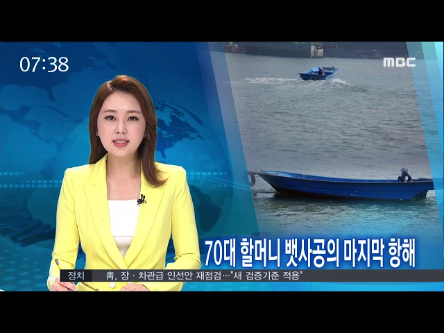 ◀ANC▶ 섬과 섬을 오가는 나룻배를 몰고 있는 70대 뱃사공이 있습니다.'바다 위의 택시운전기사'로 불리는할머니 뱃사공은 이제 마지막 항해를 준비하고있습니다.무슨 사연인지,박영훈 기자가 취재 ◀END▶ 잠시 쉬나 싶었는데 섬을 건너려는 승객의호출 전화에 뱃사공은 바빠집니다. 키를 잡은 주...