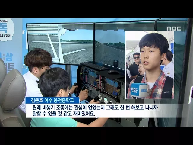 ◀ANC▶다양한 직업을 직접 체험할 수 있는'청소년 박람회'가 여수에서 막을 올렸습니다. 올해는 '4차 산업혁명'을 주제로 한프로그램이 마련돼 더욱 눈길을 끌고 있습니다. 문형철 기자입니다. ◀VCR▶커다란 모니터에 펼쳐진 활주로를 따라비행기가 이륙합니다. 학생들은 전문가의 도움을 받아비...