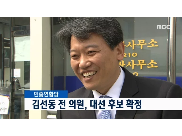 김선동 전 통합진보당 의원이민중연합당 대선후보로 확정됐습니다.민중연합당은 어제 열린 제 19대 대통령 선거 후보자 선출대회에서온라인과 ARS 찬반투표 결과 95%의 득표율로경선에 단독 출마한 김선동 전 의원을 대선후보로 확정했다고 밝혔습니다.김 전 의원은 이 자리에서극단적인 양극화의 불평등 구조를 바로잡고진...