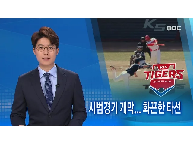 (앵커)올 시즌 프로야구 시범경기의 막이 올랐습니다.기아 타이거즈가11번째 우승 신화에 도전하고 있는 가운데막강한 중심 타선과외국인 선수들의 활약상이 기대되고 있습니다.이계상 기자..(기자)지난해 한국시리즈 우승컵을 들어올린두산베어스를 상대로 한 첫 시범경기,올 시즌부터 호랑이군단에 합류한 최형우는첫 타...