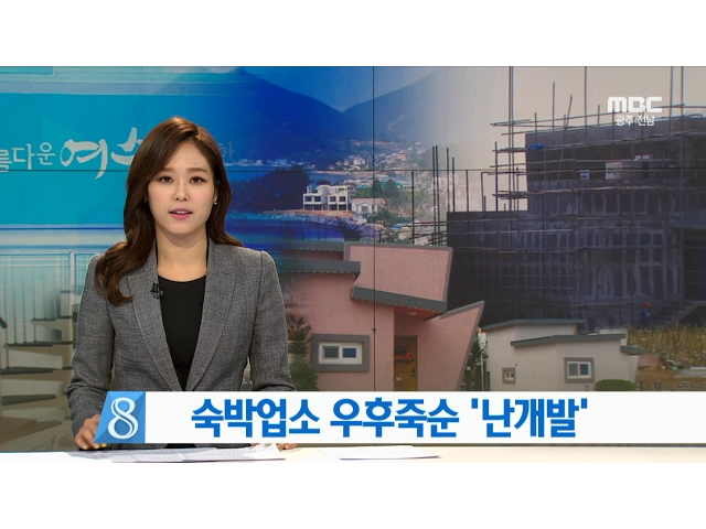 ◀ANC▶관광객 유입에 따라지역 내 숙박업소도 꾸준히 증가하고 있습니다.하지만 난개발을 막기 위한 대책이 필요하다는 여론도 만만치 않습니다.김종수 기자가 보도합니다. ◀VCR▶여수시 돌산읍 평사리 일원.최근 이곳엔 관광객 발길이 늘면서숙박시설도 눈에 띄게 늘고 있습니다.////...