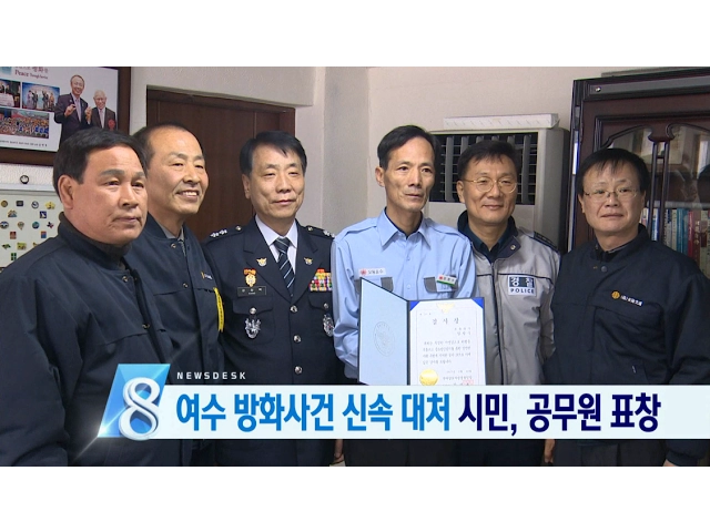 여수 시내버스 방화 사건 당시신속한 대처로 대형 피해를 막은 버스기사와 공무원들에게 표창 등이 수여됐습니다. 전남지방경찰청은당시 방화 피의자를 현장에서 붙잡은 뒤경찰에 인계한 버스기사 임정수 씨에게감사장과 신고 보상금을 전달하고,여수시도 임 씨와 초기 진화에 나선 공무원들에게유공자 표창을 수여했습니다...