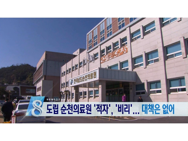 전라남도가 운영하는 순천 의료원이만성적자와 비리 의혹에 휩싸였습니다.그런데 병원이나 전라남도, 모두특별한 대책이 없어 보입니다.////////////////////////////////////////여수산단에 꿈의 신소재로 불리는탄소나노튜브 상업 생산체계가 구축됐습니다.유망한 차세대 소재 시장을 선점하는 계기가 될 전망입니다.////...
