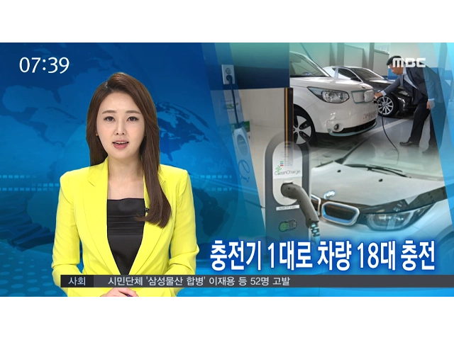 (앵커)전기차 충전기 한 대로여러 대의 차량을 동시에 충전할 수 있는 길이 열렸습니다.충전기를 설치하느라주차공간이 비좁아지는 문제를획기적으로 해결할 수 있을 것으로 기대됩니다.이계상 기자..(기자)한전 전력연구원에시범 설치돼 있는 전기차 충전 시스템입니다.주차공간이 길게 늘어서 있는 곳에차량용 충전기가 ...