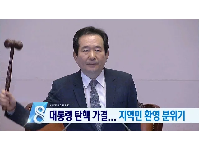 박근혜 대통량 탄핵안이 국회에서 압도적으로 가결됐습니다.앞으로 헌재 결정이 남아 있는 가운데정치권의 움직임에도 관심이 모아지고 있습니다/////////////////////////////////////////대통령 탄핵이 가결된 가운데지역에서도 촛불의 열기가 한껏 고조됐습니다.내일 도내에서는 17개 시군에서대통령 즉각퇴진을 촉구하...