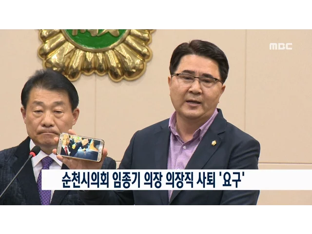 순천시의회 임종기 의장의 일부 의원들에 대한 폭언·폭행 시비가 의장직 사퇴 요구로 확산되고 있습니다.순천시의회 박용운 행정자치위원장은 오늘(28) 기자회견을 갖고 지난 25일 발생한 임종기 의장의 동료 의원 폭언.폭행 시비에 참담함을 느낀다며동료 의원들과 함께 의장 불신임안 제출 등 총력 투쟁하겠다고 밝혔습니...