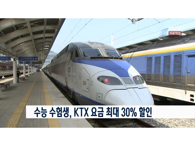 올해 수능을 치른 수험생들에게KTX 요금 할인 혜택이 주어집니다. 코레일 전남본부는오늘(18)부터 내년 2월 28일까지수험생들을 대상으로 KTX 요금을 최대 30%까지 할인한다고밝혔습니다. 요금 할인은 수험생 본인과 동반 1인까지 가능하며,수험표와 신분증을 지참한 뒤 각 역에 설치된 여행센터 등을 방문하면 됩니다.
