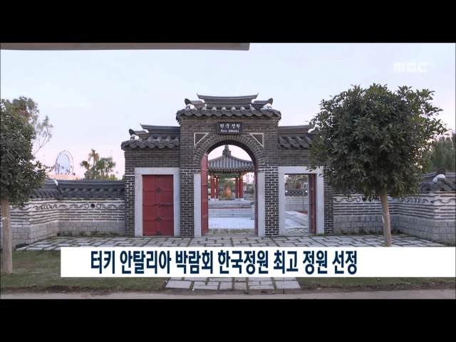 순천시가 한국을 대표해 터키 안탈리아 정원박람회장에 조성한 한국정원이 세계정원 가운데 최고의 정원으로 선정됐습니다.2016 안탈리아 엑스포 조직위는 지난 4월 22일 시작돼 지난 달 30일 막을 내린 안탈리아 정원박람회의 52개 세계정원 가운데 협회의 현장 실사와 관람객 호응도 평가를 거쳐 한국정원을 최고의 정원...