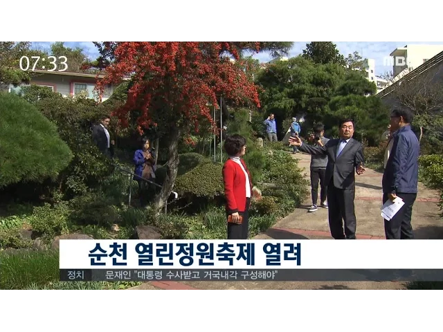 순천에서 열린정원축제가오늘(26)부터 오는 29일까지 열립니다.주민주도형으로 열리는 이번 '열린정원 축제'는오늘(26)과 내일(27)일 이틀동안 순천시 매곡동에서 정원! 예술을 담다란 주제로 기독교 문화 유적이 있는 도심형 정원 문화 축제로 개최됩니다. 또, 28일과 29일 이틀 동안 순천시 도사동 교량행복마을에서는붉...