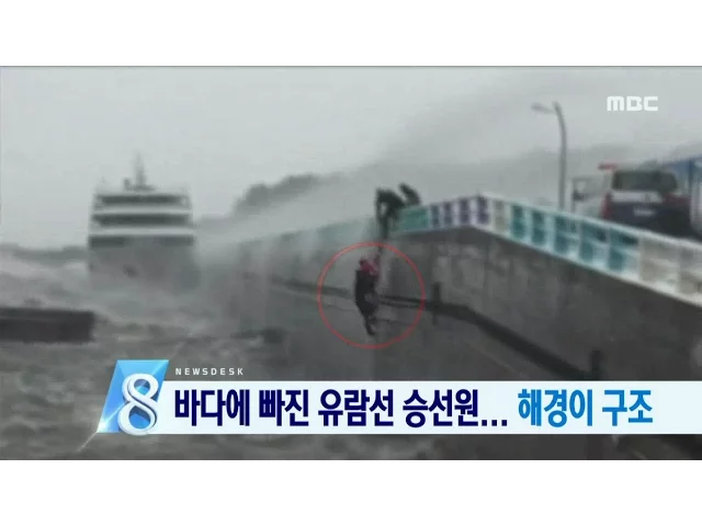 ◀ANC▶태풍 차바가 북상하면서 여수에서는 인명피해가 날 뻔한 아찔한 순간도 있었습니다. 바다에 빠진 유람선 승선원들을 구조하기 위한일촉즉발의 상황을 김종수 기자가 취재했습니다 ◀VCR▶18호 태풍이 여수를 강타한오늘 오전 8시 20분쯤.엑스포 신항 부두에 정박해 있던천3백톤급 유람선의 ...