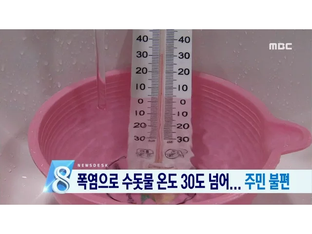 ◀ANC▶ 한 시골 마을 수돗물이 30도를 웃돌고 있습니다. 찜통더위에 지친 주민들은 한여름 따뜻한 수돗물 때문에 여간 불편하게 아닙니다. 문연철 기자가 보도합니다. ◀END▶ ◀VCR▶ 숨이 턱턱 막히는 찜통더위 때문에잠시 농삿일을 접고 집에서 씻어보지만더위가 가시질 않습니다....