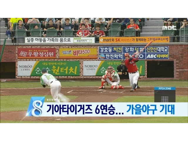 (앵커)연일 폭염이 계속되는 동안야구팬들은 요즘 한여름 청량제 같은 소식을 접하고 있습니다.기아타이거즈가 6연승 끝에 4위로 올라서며5년만의 가을 야구에 대한 기대감을 높이고있습니다.이계상 기자..(기자)인천상륙작전에 빗대어진기아타이거즈와 SK와이번즈의 주말 3연전,호랑이군단은세 경기 모두 쉽지 않은 순간을...
