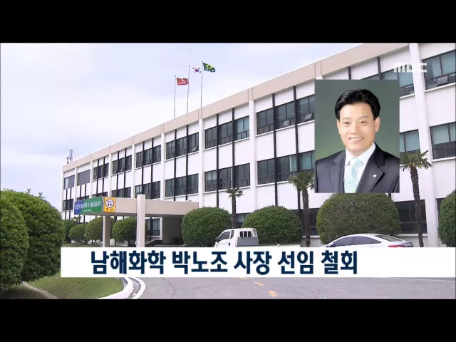 남해화학 이사회가 첫 공모사장으로 내정했던 박노조 사장 후보자에 대해 추천을 철회했습니다남해화학은 최근여수공장 회의실에서 임시 이사회를 열고 박 후보자의 자질 문제를 거론하며사장 추천을 철회했습니다.박 후보자는 이에대해소명을 하려고 여러 차례 노력을 했지만 받아들여지지 않았다며 공정한 판단을 받아봐...