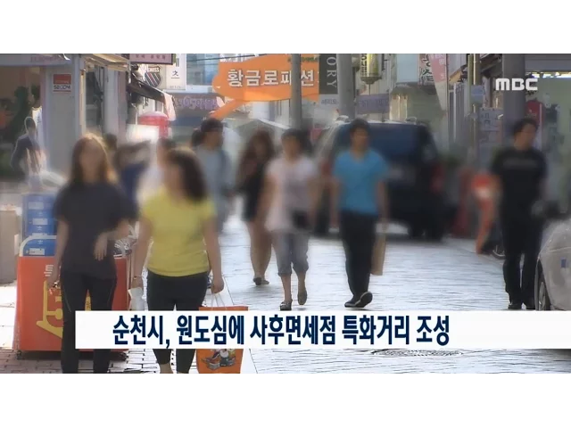 순천시도 원도심 일원에 사후 면세점 특화거리 조성에 나섰습니다.순천시는 외국인 관광객들의 도심 유입을 유도하고지역 경제 활성화를 위해 중앙동 일원 300여개 상가를 중심으로 한 사후 면세점 특화거리를 조성하기로 하고 원도심 상인회 간담회 등 관련 절차를 진행하고 있습니다.순천시는 오는 9월 쯤 원도심 상가...