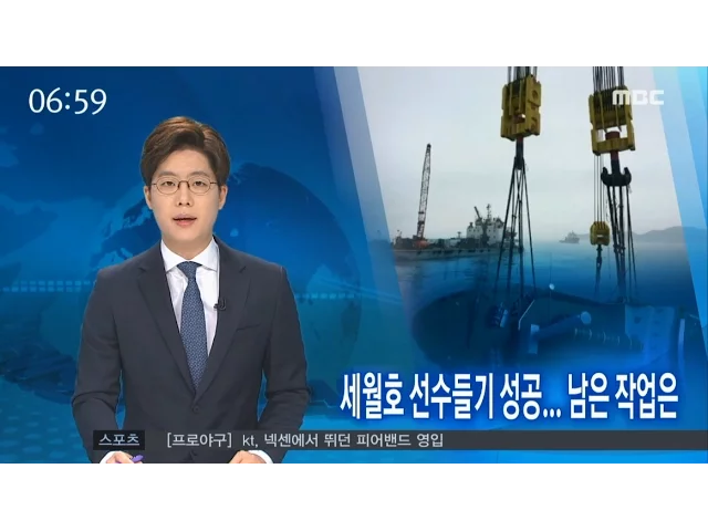 ◀ANC▶ 해양수산부가 인양의 80퍼센트를 차지한다고 밝혀온핵심 공정, 선수들기가 성공했습니다. 선수들기만 수차례 연기와 실패를 거듭해온만큼 작업 내용을 제대로 공개하지 않고 있는 가운데 장관은 현장을 찾았습니다. 김진선 기자의 보도입니다. ◀END▶ ◀VCR▶ 바닷속 세월호 ...