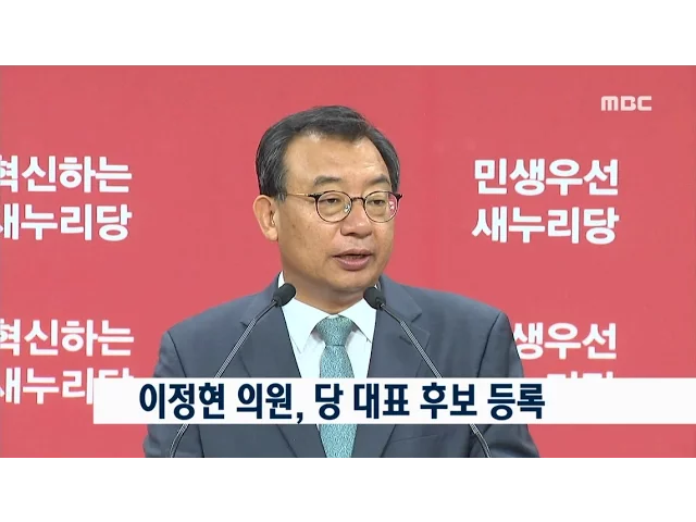 당 대표 출마를 선언했던새누리당 이정현 의원이공식 후보 등록을 마쳤습니다. 이 의원은 오늘(29) 후보 등록을 마친 뒤 기자회견을 열고새누리당의 인식과 행태를 바꾸고자 한다며자신이 당 대표 후보로 등록한 자체가 새누리당 혁명의 시작이라고 말했습니다.한편, 새누리당 당 대표 선거에는이정현 의원을 포함해 이주영...