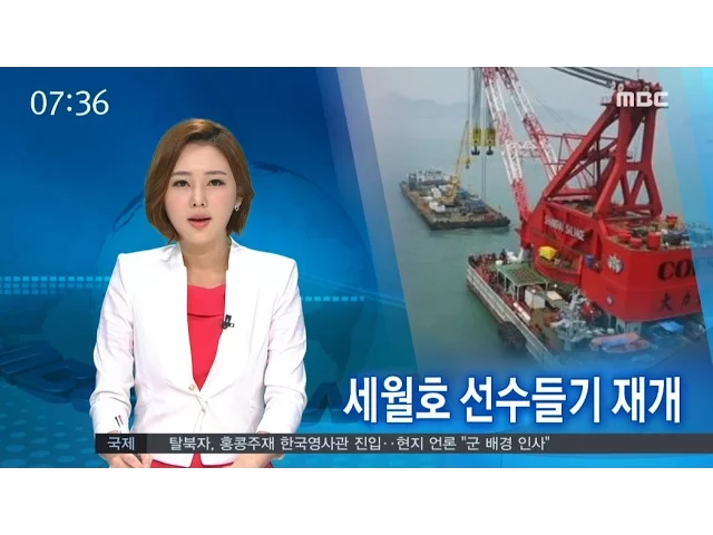 ◀ANC▶수차례 연기됐던 세월호 선수들기 작업이 재개됐습니다.현장에서는 준비작업이 한창인데,높은 너울로 지연되고 있습니다. 김진선 기자가 취재했습니다. ◀END▶ ◀VCR▶ 계획보다 하루 일찍 시작된세월호 선수들기 작업. 예상보다 너울이 높게 일면서어민들도 조업을 포기했지만 ...