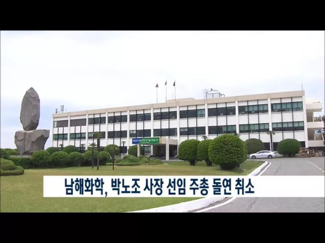 최근 선임된 남해화학 박노조 사장의 취임이 돌연 연기되면서 그 배경에 관심이 모아지고 있습니다.남해화학은 당초 어제(31일) 임시 주주총회를 열어박노조 사장을 대표이사로 최종 승인하고오늘 취임식을 가질 예정이었지만주총을 갑자기 취소했습니다.전 여수시 도시공사 사장으로남해화학 본사이전 이후 첫 사장이 계획...