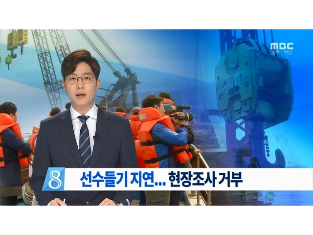 ◀ANC▶ 세월호 뱃머리를 들어올리는'선수들기' 작업이 2주 연기된 가운데특별조사위원회가 실지조사에 나섰습니다. 현장에서는특조위의 인양작업 바지선 접근을 막기 위해위험천만한 상황도 빚어졌습니다. 김진선 기자가 취재했습니다. ◀END▶ ◀VCR▶ 세월호 특별조사위원회가 탄 낚...