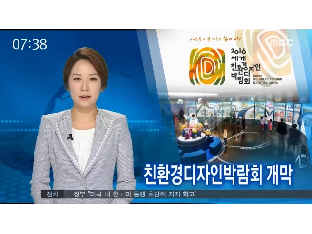 (앵커)친환경과 디자인을 접목한 세계 최초의 박람회가 개막했습니다.자연의 빛과 색을 바탕으로친환경 디자인의새로운 트렌드를 선보인다고 합니다.송정근 기자입니다.(기자)푸른색의 천연 염색 장막 수 백개가거대한 물결을 이룬 '쪽빛 바닷길'을 지나,빛과 그늘이 어우러진'빛과 바람의 울림길'을 지나면세계친환경디자...