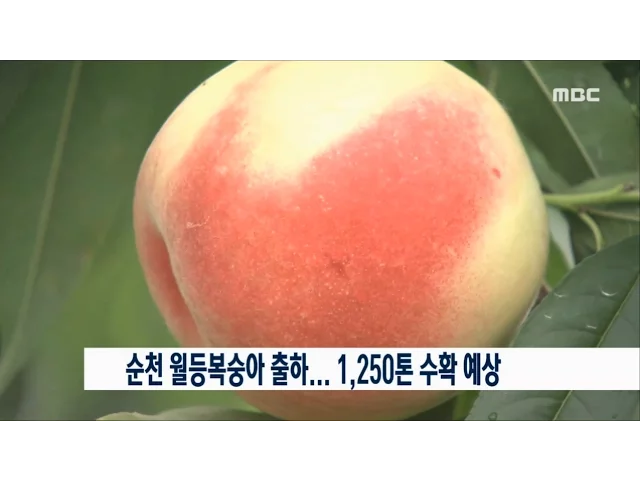 순천지역의 특산물인 월등복숭아가올해 출하를 시작했습니다.월등복숭아 재배 규모는 160여 농가, 112ha로올해는 풍부한 일조량 등의 영향으로지난해보다 당도가 높고수확량도 4% 정도 증가한천 250톤이 될 것으로 예상됩니다. 한편, 올해로 14회째를 맞는 월등복숭아 체험행사는 오는 8월 5일부터 사흘간 월등면 일원에서...