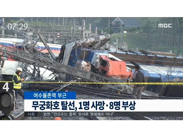 오늘 새벽 3시 41분쯤여수 율촌역 부근에서 용산역에서 출발해 여수엑스포역으로 가던무궁화호 열차 3량이 탈선했습니다.이 사고로 이 열차의 기관사 54살 양모씨가 숨지고부기관사 56살 정모씨와 승객등 8명이 다쳐 병원에서 치료를 받고 있습니다.또 순천에서 여수엑스포역까지 전라선 열차의 운행이 상하행선 모두 중...
