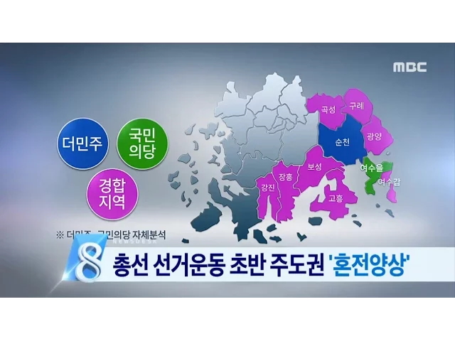 20대 총선 선거운동이 시작된 가운데초반 주도권 다툼이 혼전양상입니다.특히 관심을 모으고 있는 전남동부지역은당 지도부가 지원유세를 집중하면서한치앞도 예측하기 힘든 상황입니다.///////////////////////////////////지역에서 열린 첫 선거방송 토론회에서여수시 갑 선거구 후보들이 자신이 적임자라며 격돌했습니다...