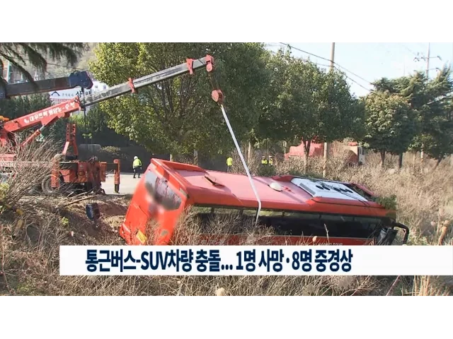 통근버스-SUV차량 충돌...1명 사망·8명 중경상