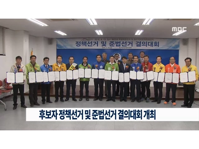 시.군 선거관리위원회가등록 후보자를 대상으로정책선거 및 준법선거 결의대회를 가졌습니다.여수시선거관리위원회는 오늘국회의원 후보자들이 참석한 가운데다음달 총선을 앞두고정책에 의해 정정당당하게 경쟁하고법규를 준수하는깨끗한 선거가 될 수 있도록 결의했습니다.참석자들은 또,혈연.학연.지연 등연고주의에 의...