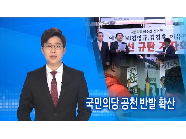 ◀ANC▶지역에서도 국민의당 공천 결과에 대한반발이 만만치 않습니다.불만을 표시하는 예비후보와 그 지지자들이강하게 항의하며 재경선을 요구하고 나섰습니다김종태 기자가 취재했습니다. ◀END▶주승용 예비후보 사무실 앞에수십여명의 사람들이 모여 거칠게 항의합니다.국민의당 여수 갑 공천 ...