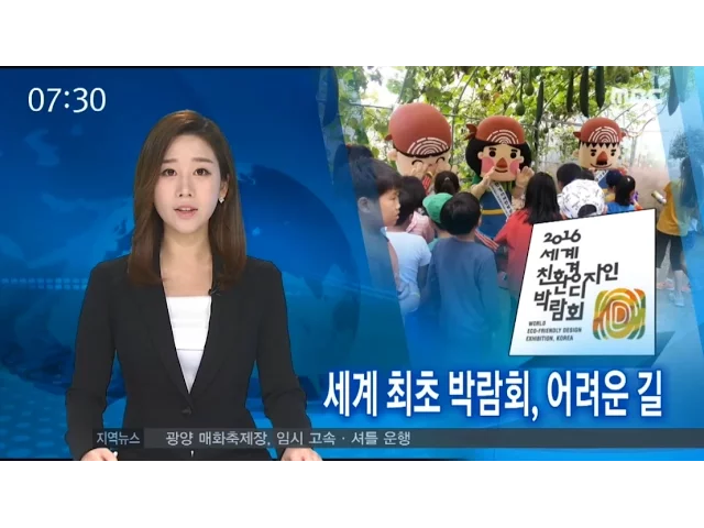 ◀ANC▶ 전라남도가 세계 최초로 친환경디자인박람회를준비하고 있습니다. 자연과 다자인을 융합해 미래 성장동력을찾는다는 목표지만 대중의 관심을 끌기가쉽지 않습니다.최진수 기자가 보도합니다. ◀END▶ ◀VCR▶ 박람회장에 들어서면 천연염색한 천으로 연출한 푸른 바닷길이 ...