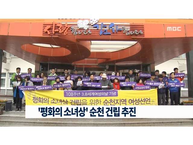 세계여성의 날을 맞아 순천지역 여성단체들이위안부 피해자를 상징하는 '평화의 소녀상'을순천에 만들기 위해 힘을 모으기로 했습니다.'평화의 소녀상 건립을 위한 여성연대'는오늘(8) 순천시청 앞에서 기자회견을 열고앞으로 시민 모금과 순천시 협의를 거쳐순천에도 소녀상 건립을 추진하겠다고 밝혔습니다.여성단체들은 ...