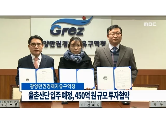 광양만권 경제자유구역청이 율촌산업단지 입주예정인 6개 업체와450억 원 규모의 투자협약을 체결했습니다.이번 협약에 참여한 업체는200억 원을 투자할 계획인 패널 생산 업체'주식회사 한성골드' 등,국내 4개 기업과 외국인투자기업 2군데로고용인원은 2백 명 수준이 될 것으로 보입니다.오늘(24) 열린 투자 협약식에서경...