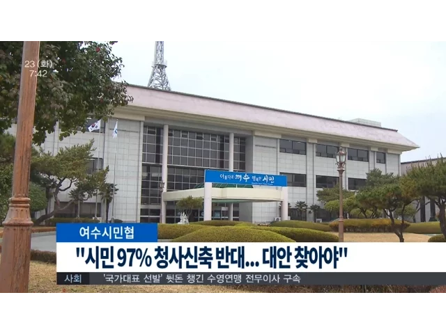 여수시가 돌산청사 직원 재배치 방안의 하나로청사 신축을 검토하고 있는 가운데시민단체가 반대 입장을 내놨습니다. 여수시민협은 최근시민 590여 명을 대상으로돌산청사 직원 재배치 방안에 대한설문조사를 실시한 결과전체 조사대상의 97%에 이르는 시민들이청사 신축에 반대했다고 밝혔습니다. 시민협은 여수시가 시민 ...