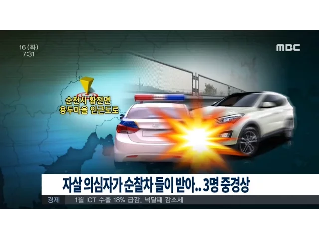 자살 의심자가 순찰차 들이 받아..3명 중경상