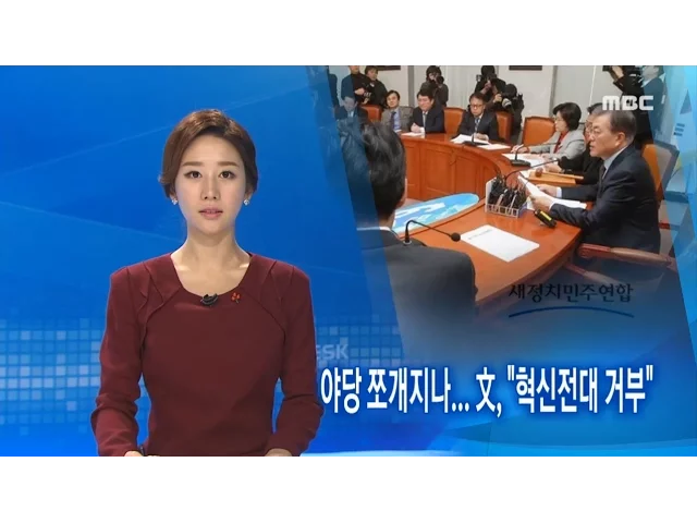 (앵커)새정치민주연합이당이 쪼개질 위기에 처했습니다. 비주류는 지도부 사퇴에 집단 탈당 움직임까지 보이고 있어 당내 갈등이 화해 없는 국면으로 치닫고 있습니다. 김인정 기자입니다. (기자) 안철수 전 대표의 최후통첩에문재인 대표는 "거부"로 답했습니다. 문 대표는 총선을 앞둔 시기에 대결 제안은 받아들일 수 ...